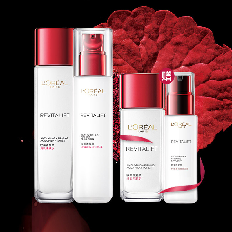 欧莱雅复颜抗皱紧致护肤化妆品套装1(水130ml+乳110ml+赠品:水65ml赠品*2或水65ml+乳50ml)
