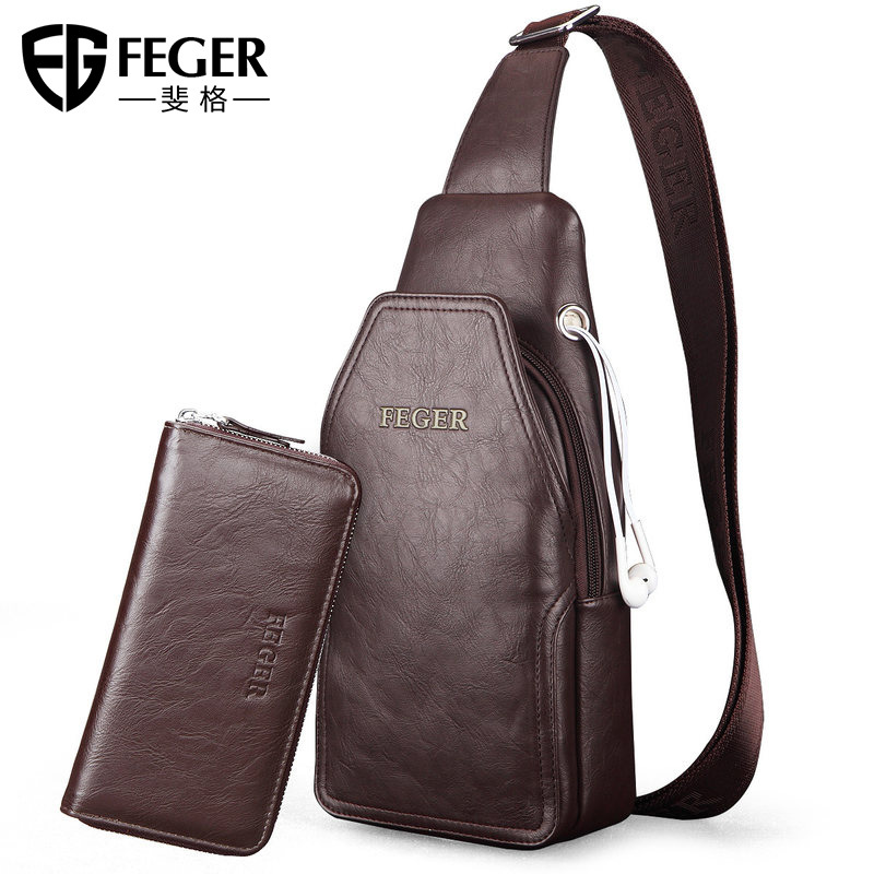 买一送一!!FEGER斐格 腰包单肩包斜挎包时尚休闲男包竖款PU胸包男223男士胸包