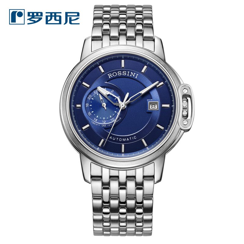 罗西尼(ROSSINI)正品时尚男士商务手表雅尊商务系列金属钢带防水日历自动机械表 男617793 蓝盘钢带617793W05B